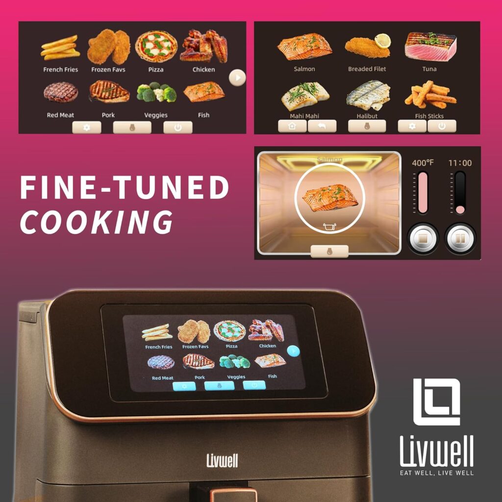 Livwell Touch IQ Matte Grey 7 Quart Air Fryer with High-Resolution Touch Screen, 200+ Recipes, 12 Food Categories, 3 Portion Sizes, PFAS-Free, and Multilingual for Cooking and Kitchen Gift